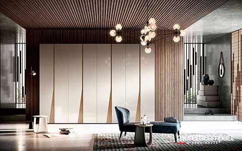 Ogni soluzione presentata in questo sito, e in generale quasi la totalità della produzione Moretti Compact, può essere personalizzata cambiando tipologia dei frontali, variando finiture e colori degli elementi secondo il proprio gusto, cambiando il tipo di maniglia e scegliendo tra numerosi accessori interni...
