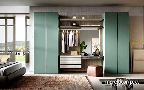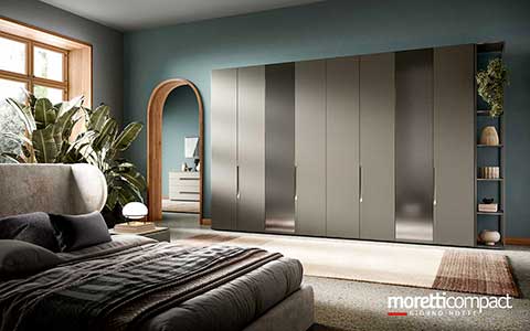 Ogni soluzione presentata in questo sito, e in generale quasi la totalità della produzione Moretti Compact, può essere personalizzata cambiando tipologia dei frontali, variando finiture e colori degli elementi secondo il proprio gusto, cambiando il tipo di maniglia e scegliendo tra numerosi accessori interni...