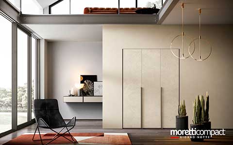 Ogni soluzione presentata in questo sito, e in generale quasi la totalità della produzione Moretti Compact, può essere personalizzata cambiando tipologia dei frontali, variando finiture e colori degli elementi secondo il proprio gusto, cambiando il tipo di maniglia e scegliendo tra numerosi accessori interni...