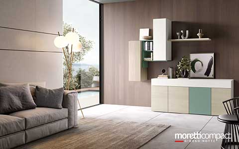 Ogni soluzione presentata in questo sito, e in generale quasi la totalità della produzione Moretti Compact, può essere personalizzata cambiando tipologia dei frontali, variando finiture e colori degli elementi secondo il proprio gusto, cambiando il tipo di maniglia e scegliendo tra numerosi accessori interni...