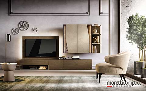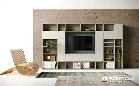 Ogni soluzione presentata in questo sito, e in generale quasi la totalità della produzione Moretti Compact, può essere personalizzata cambiando tipologia dei frontali, variando finiture e colori degli elementi secondo il proprio gusto, cambiando il tipo di maniglia e scegliendo tra numerosi accessori interni...