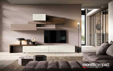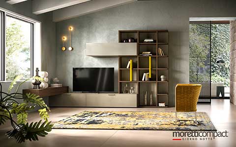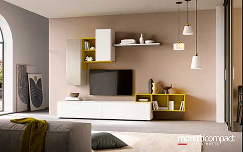 Ogni soluzione presentata in questo sito, e in generale quasi la totalità della produzione Moretti Compact, può essere personalizzata cambiando tipologia dei frontali, variando finiture e colori degli elementi secondo il proprio gusto, cambiando il tipo di maniglia e scegliendo tra numerosi accessori interni...
