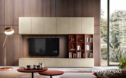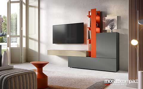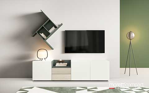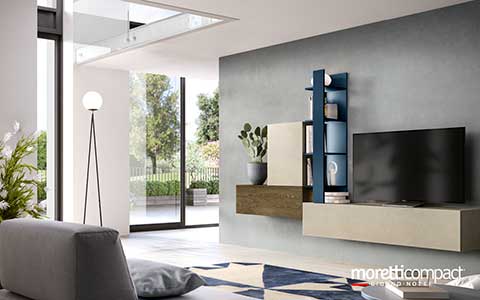 Ogni soluzione presentata in questo sito, e in generale quasi la totalità della produzione Moretti Compact, può essere personalizzata cambiando tipologia dei frontali, variando finiture e colori degli elementi secondo il proprio gusto, cambiando il tipo di maniglia e scegliendo tra numerosi accessori interni...