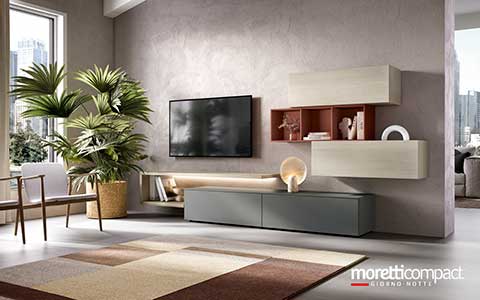 Ogni soluzione presentata in questo sito, e in generale quasi la totalità della produzione Moretti Compact, può essere personalizzata cambiando tipologia dei frontali, variando finiture e colori degli elementi secondo il proprio gusto, cambiando il tipo di maniglia e scegliendo tra numerosi accessori interni...