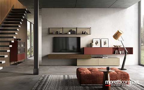 Ogni soluzione presentata in questo sito, e in generale quasi la totalità della produzione Moretti Compact, può essere personalizzata cambiando tipologia dei frontali, variando finiture e colori degli elementi secondo il proprio gusto, cambiando il tipo di maniglia e scegliendo tra numerosi accessori interni...