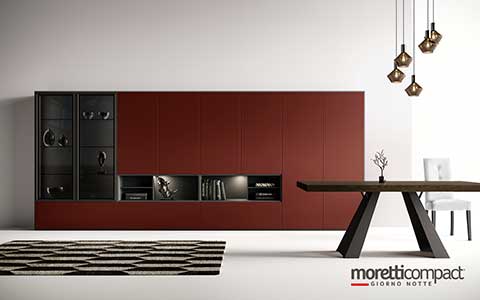 Ogni soluzione presentata in questo sito, e in generale quasi la totalità della produzione Moretti Compact, può essere personalizzata cambiando tipologia dei frontali, variando finiture e colori degli elementi secondo il proprio gusto, cambiando il tipo di maniglia e scegliendo tra numerosi accessori interni...