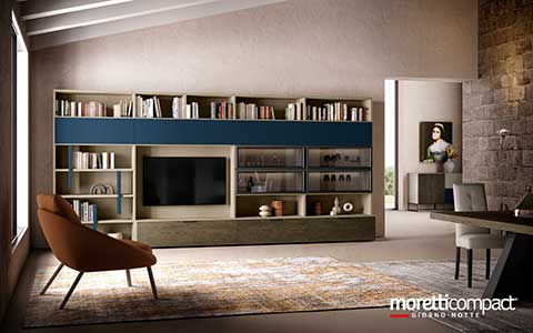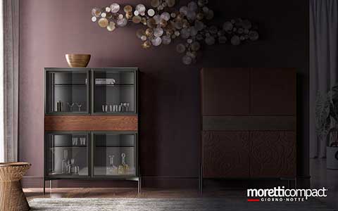 Ogni soluzione presentata in questo sito, e in generale quasi la totalità della produzione Moretti Compact, può essere personalizzata cambiando tipologia dei frontali, variando finiture e colori degli elementi secondo il proprio gusto, cambiando il tipo di maniglia e scegliendo tra numerosi accessori interni...