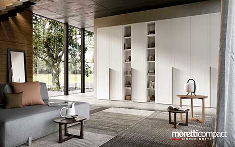 Ogni soluzione presentata in questo sito, e in generale quasi la totalità della produzione Moretti Compact, può essere personalizzata cambiando tipologia dei frontali, variando finiture e colori degli elementi secondo il proprio gusto, cambiando il tipo di maniglia e scegliendo tra numerosi accessori interni...