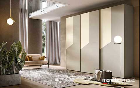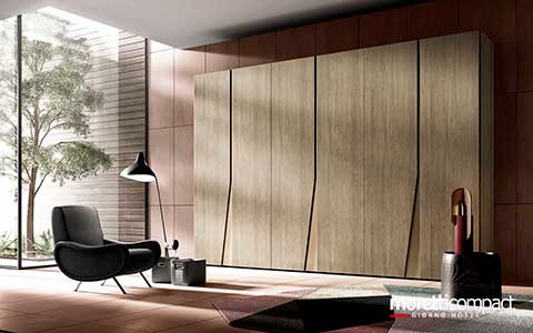 Ogni soluzione presentata in questo sito, e in generale quasi la totalità della produzione Moretti Compact, può essere personalizzata cambiando tipologia dei frontali, variando finiture e colori degli elementi secondo il proprio gusto, cambiando il tipo di maniglia e scegliendo tra numerosi accessori interni...