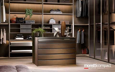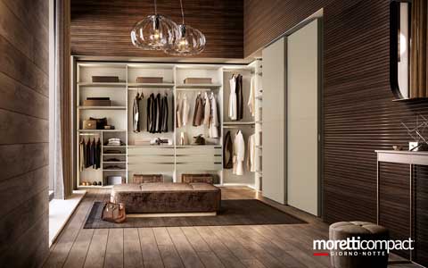 Ogni soluzione presentata in questo sito, e in generale quasi la totalità della produzione Moretti Compact, può essere personalizzata cambiando tipologia dei frontali, variando finiture e colori degli elementi secondo il proprio gusto, cambiando il tipo di maniglia e scegliendo tra numerosi accessori interni...