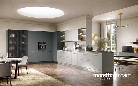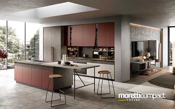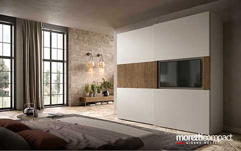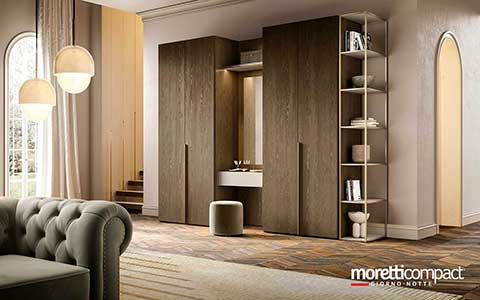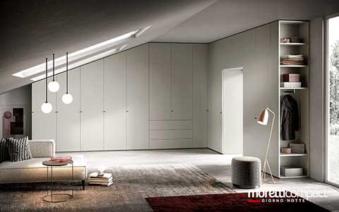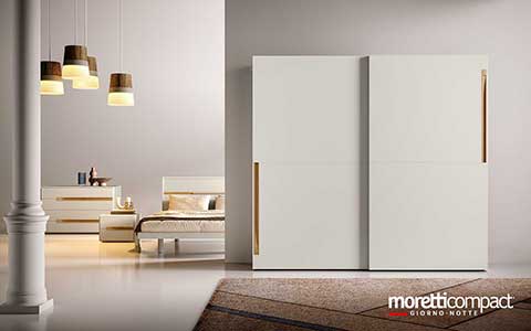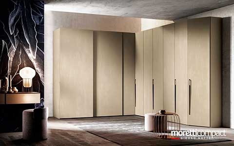 Ogni soluzione presentata in questo sito, e in generale quasi la totalità della produzione Moretti Compact, può essere personalizzata cambiando tipologia dei frontali, variando finiture e colori degli elementi secondo il proprio gusto, cambiando il tipo di maniglia e scegliendo tra numerosi accessori interni...