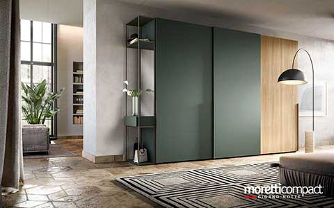 Ogni soluzione presentata in questo sito, e in generale quasi la totalità della produzione Moretti Compact, può essere personalizzata cambiando tipologia dei frontali, variando finiture e colori degli elementi secondo il proprio gusto, cambiando il tipo di maniglia e scegliendo tra numerosi accessori interni...