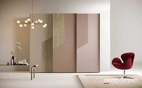 Ogni soluzione presentata in questo sito, e in generale quasi la totalità della produzione Moretti Compact, può essere personalizzata cambiando tipologia dei frontali, variando finiture e colori degli elementi secondo il proprio gusto, cambiando il tipo di maniglia e scegliendo tra numerosi accessori interni...