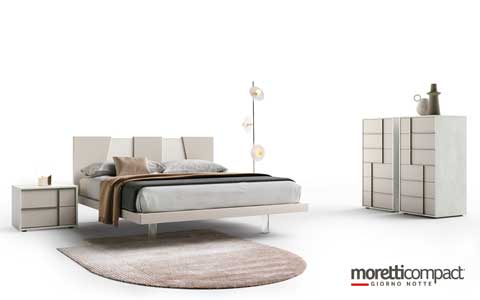 Camera Argo con letto Icaro. Perfezione del risultato e massima personalizzazione sono i termini che identificano la bellezza finale di Argo. Arredi modulari pensati per uno spazio indoor con una forte identità per una maggiore libertà progettuale in camera.